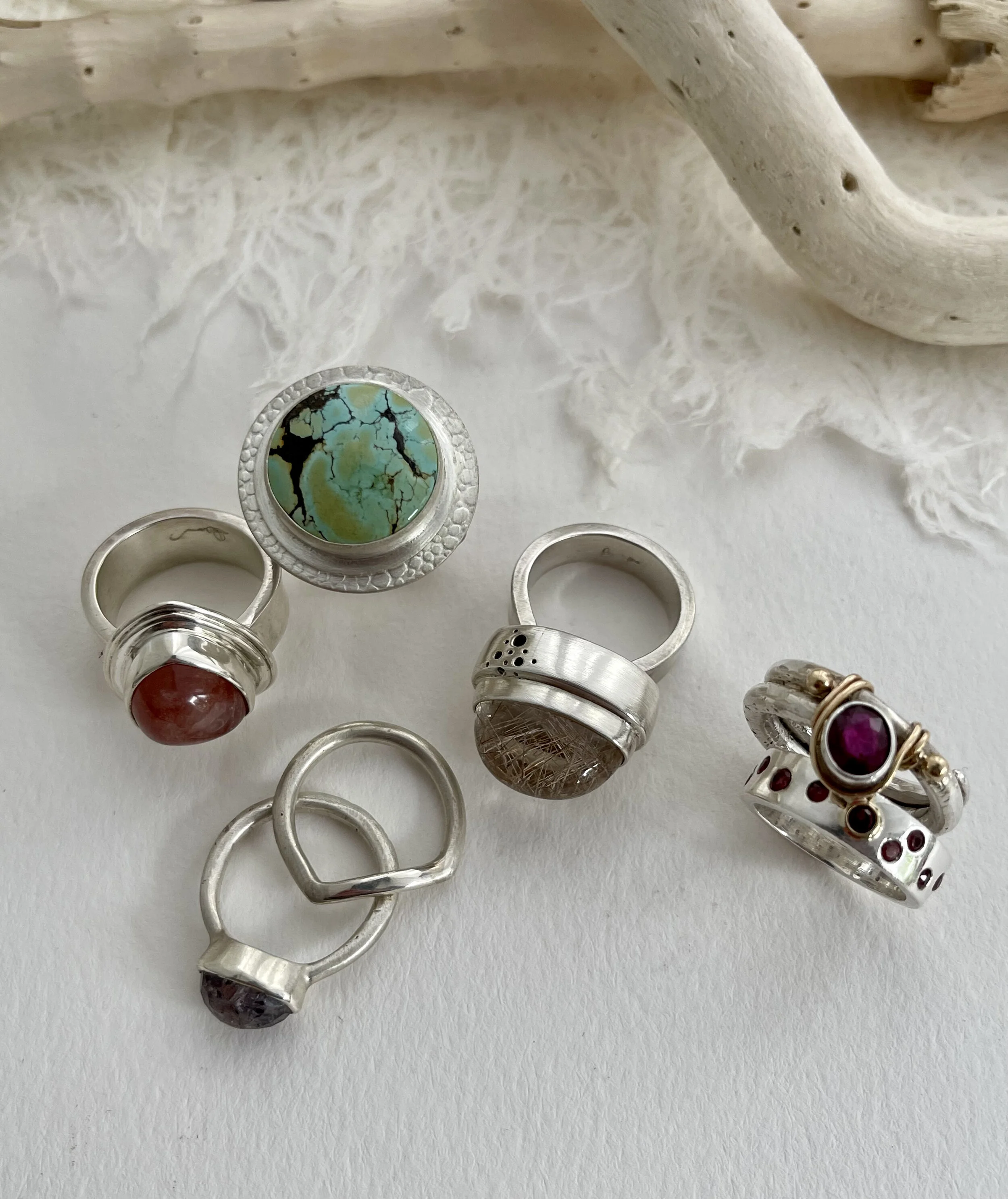 Each fabulous pairing of stone and metal is a true collaboration. The stone really dictates how it would like to be set. Some are a bit more regal, some funky, loud and proud. A visual delight for certain.